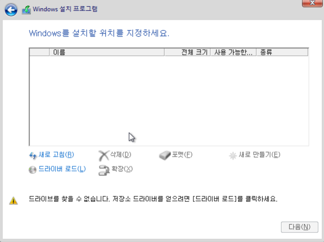 그렇게 하니 해당 ISO를 설치할 드라이버를 잡을수 없었다.