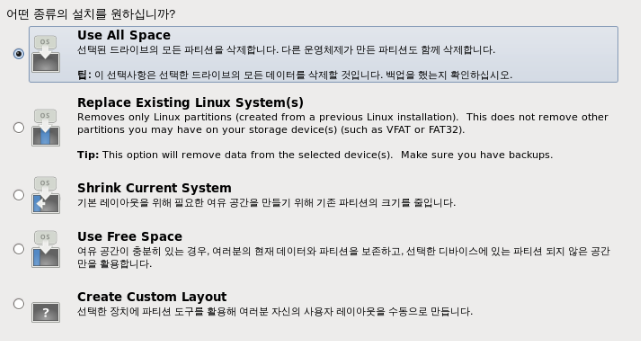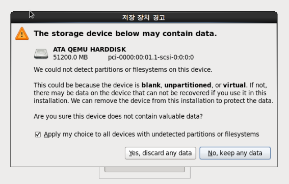 Yes, discard any data 선택. 새로 설치하는 것이기 때문에 데이터를 다 날려도 무방.