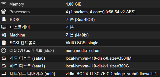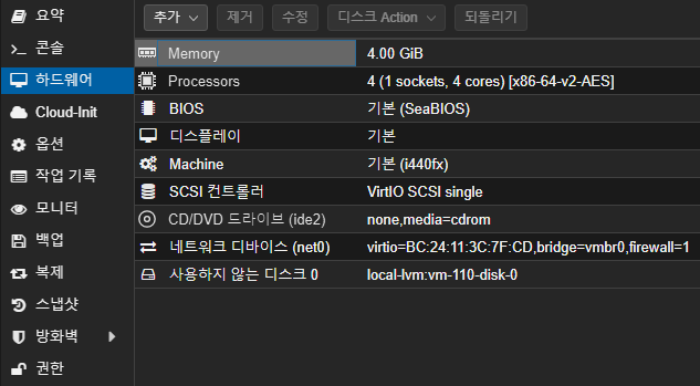 그렇다면 위와 같이 해당 vm 하드웨어 탭에