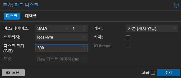 해당 NAS 서버에서 할당하고싶은 용량을 하드 디스크 추가로 변경.