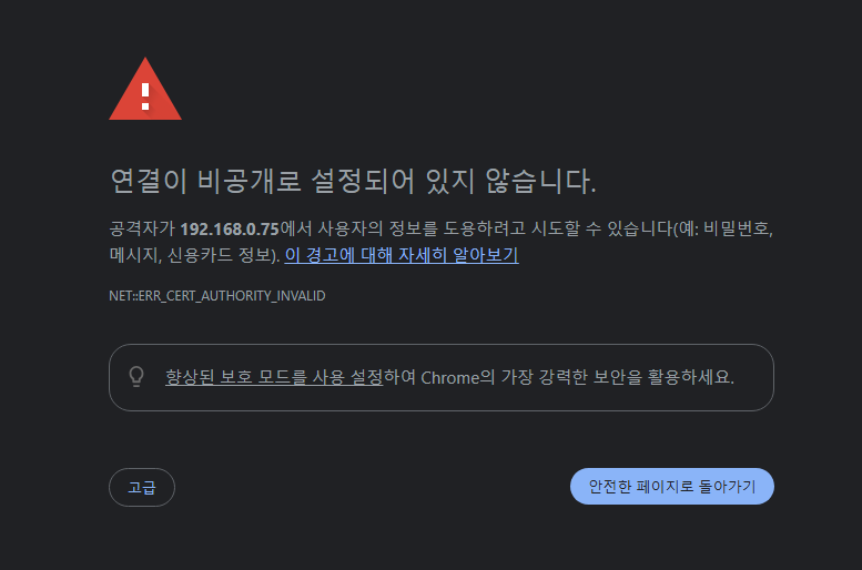 이번에는 http://192.168.0.75:5000 으로 접속.