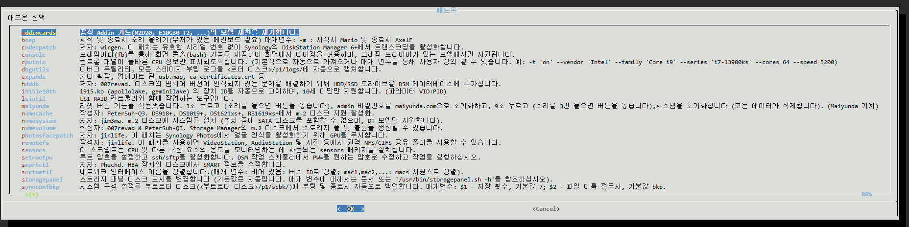 (오류 해결 애드온이라던가, 암호 ssh/sftp, RR업데이트 알림, WIFI 등 다양한 애드온 기능)