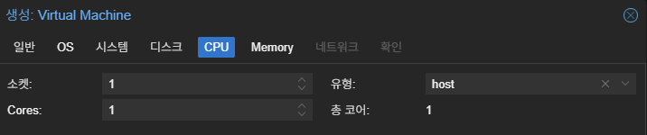 Proxmox VM 생성중 cpu 탭을 보게 되면 유형 항목이 존재함.
