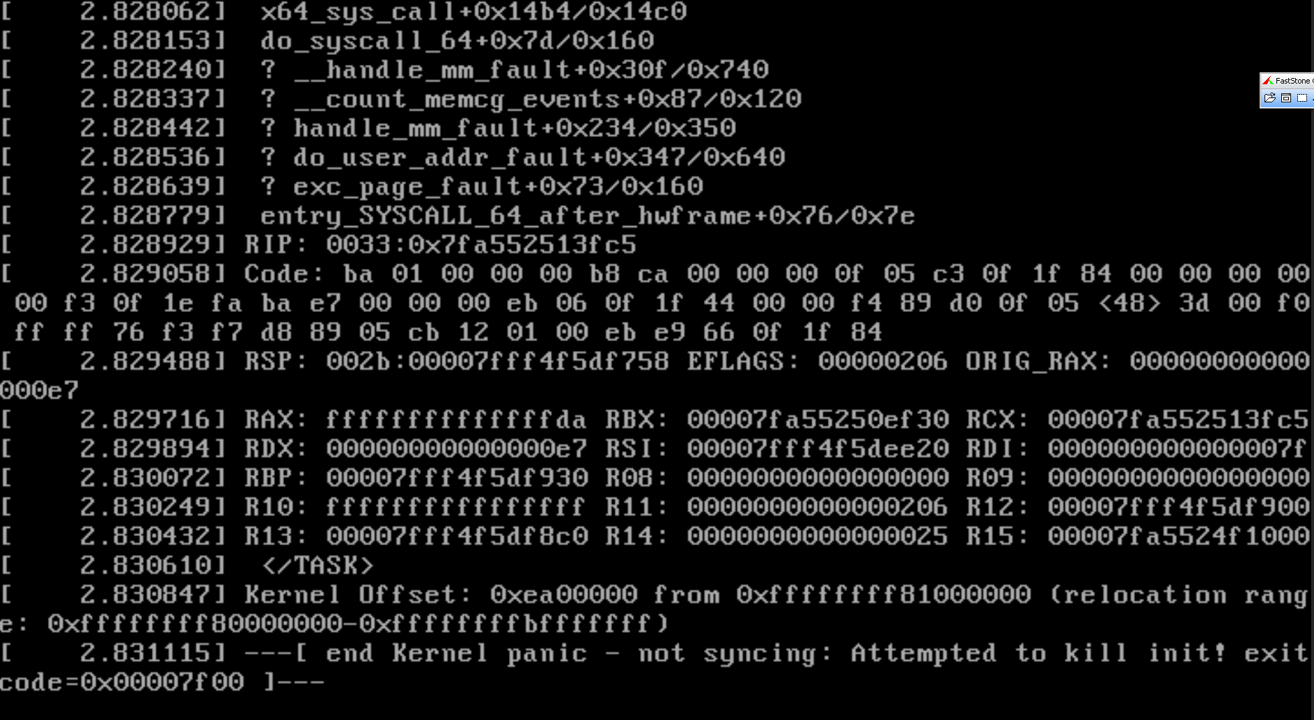 Kernel panic - not syncing: Attempted to kill init! exitcode=0x00007f00